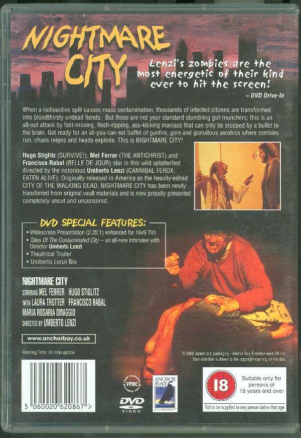 Hah hah haa! Incubo Sulla Citta Contaminata (Nightmare City) is a quite good, old-school zombie movie from Italy. This film is not as stylish as, say, Lucio Fulci's gothic horrors, but it works fine anyway. While Lucio Fulci was almost always careful about creating the proper atmosphere, beautiful cinematography and choosing the suitable soundtracks, Umberto Lenzi has cut many corners and adopted a looser approach here.